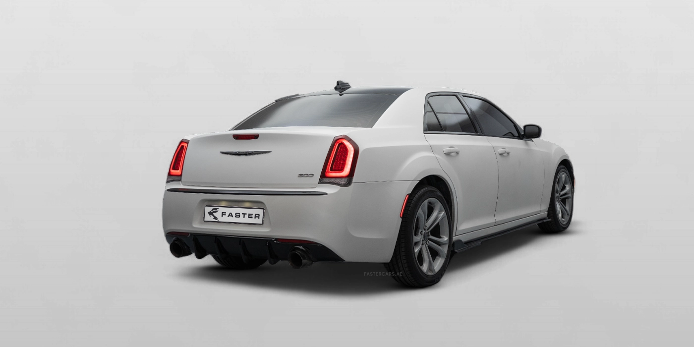 The 2019 Chrysler 300 (Y 32506) finished in black with a bold red interior is a luxury sedan that blends performance and modern convenience. It features advanced infotainment with Android Auto, Apple CarPlay, Bluetooth, a built-in navigation system, streaming apps, USB ports and voice commands. The cabin pampers occupants with electric adjustable leather seats that include heating, ventilation and rear‑seat cooling, plus smart‑key entry and multi‑zone climate control. Safety equipment includes a 360° camera system, adaptive cruise control, blind‑spot monitoring, night vision, parking sensors, rear cameras and tyre‑pressure monitoring. Exterior touches such as alloy wheels, a sculpted body kit with chrome accents, dual exhaust outlets, fog lights, illuminated emblems, LED headlights and tinted windows give the Chrysler 300 an elegant yet athletic stance.
