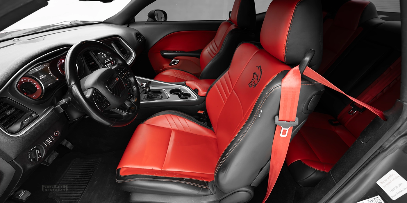 With an eye‑catching grey exterior and red highlights, the 2019 Dodge Challenger (T 47925) is a sport‑modified coupe that merges retro muscle with modern technology. Its infotainment suite provides Android Auto, Apple CarPlay, Bluetooth connectivity, navigation and streaming apps via a touchscreen with USB ports and voice commands. Interior comforts include electrically adjustable leather seats with heating and rear‑seat cooling, smart key entry, multi‑zone climate control and foldable rear seats. Safety features encompass adaptive cruise control, tyre‑pressure monitoring, rear cameras, parking sensors and night vision. Exterior enhancements—alloy wheels, a performance body kit with chrome accents, dual exhaust outlets, fog lights, illuminated emblems, LED headlights and tinted windows—give it a powerful stance.