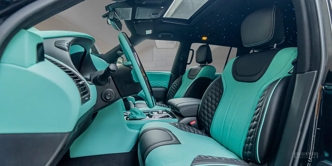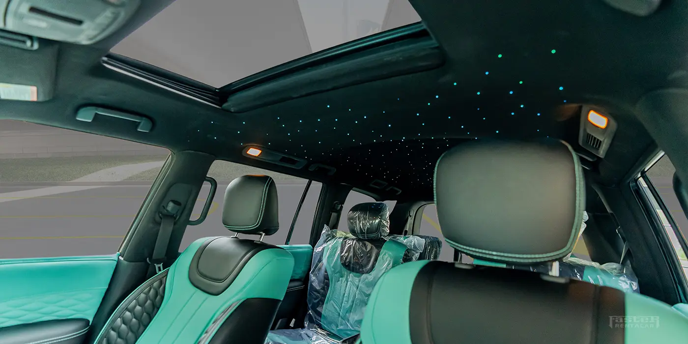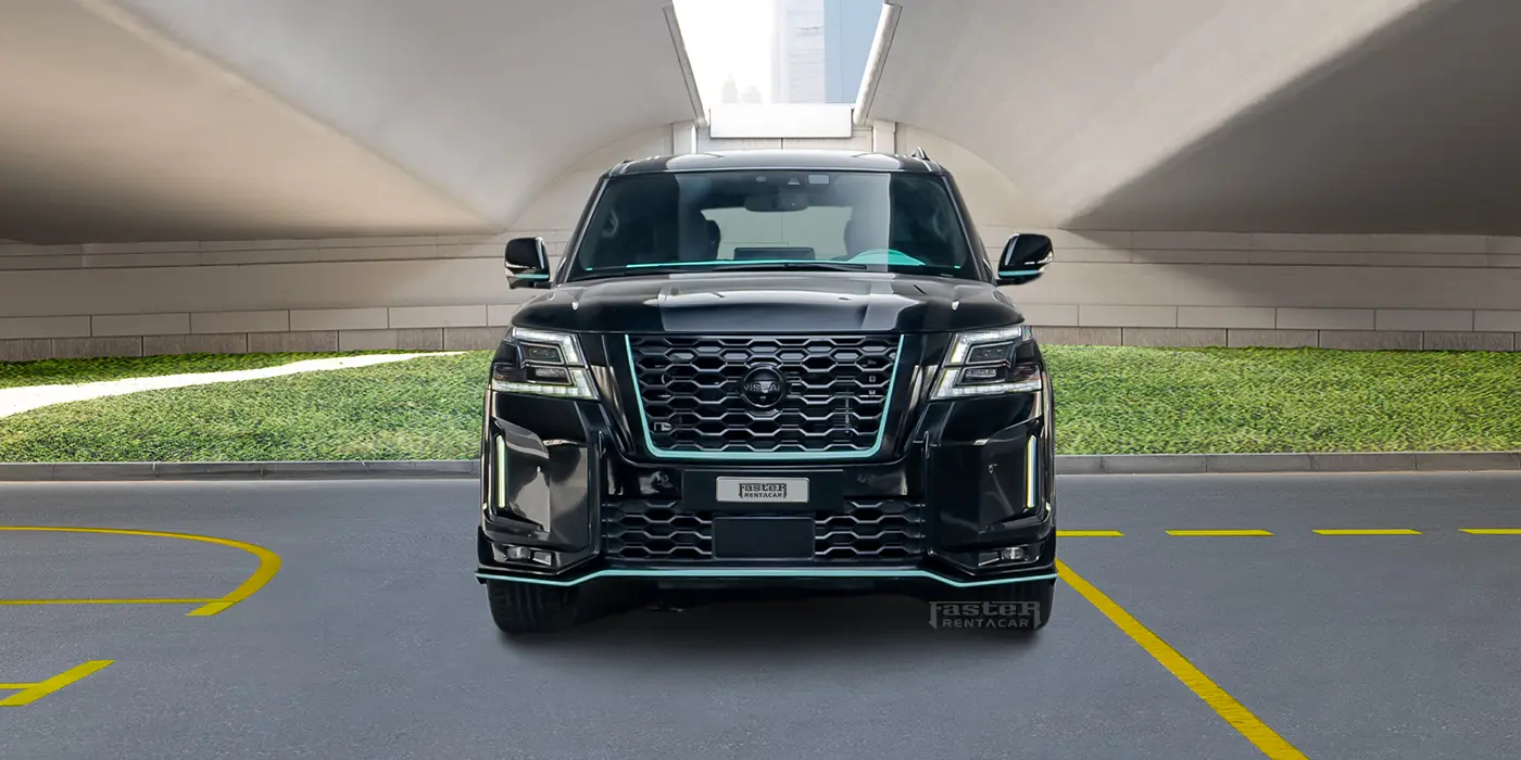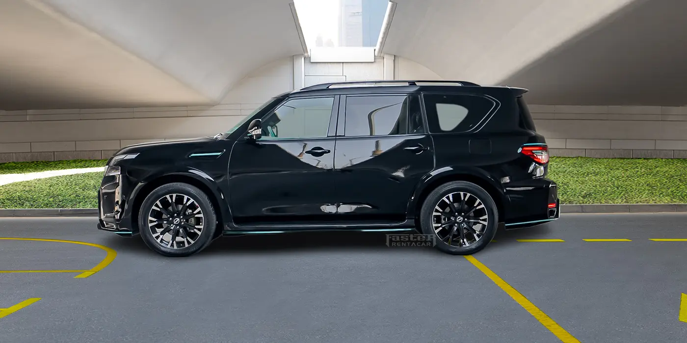 The 2021 Nissan Patrol in black tiffany is a luxury family‑friendly SUV seven‑seater that is designed to provide a perfect balance of performance, technology and comfort and features a sun roof. It offers Android Auto, Apple CarPlay, Bluetooth connectivity, a navigation system, streaming apps, a large touchscreen display, USB ports, voice commands and wireless charging. Inside, passengers enjoy electric adjustable leather seats with heating, ventilation and memory settings, ambient lighting, rear entertainment screens, smart key integration, rear seat cooling and heating, multi‑zone climate control and a heated steering wheel, while foldable rear seats add practicality. Safety equipment includes a 360‑degree camera system, adaptive cruise control, automatic emergency braking, blind‑spot monitoring, a collision avoidance system, front cameras, lane‑keeping assist, night vision, parking sensors and rear cameras. Exterior details such as alloy wheels, a sporty body kit, chrome accents, electric folding mirrors, fog lights, illuminated emblems, LED headlights, roof rails, tinted windows and running boards give it a commanding yet sophisticated look.