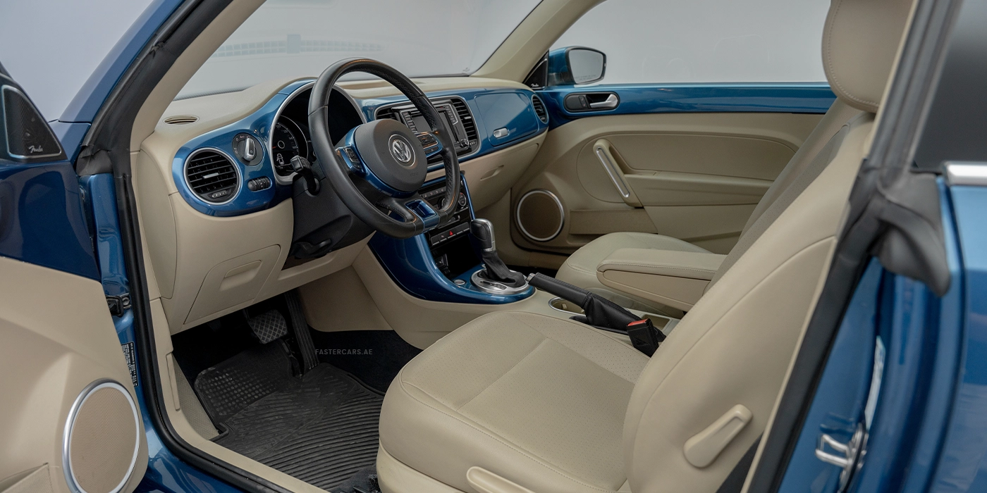The 2019 Volkswagen Beetel in blue is a economical compact vehicle that delivers an engaging driving experience with cutting‑edge technology and luxury and features a sun roof. It offers Android Auto, Apple CarPlay, Bluetooth connectivity, a navigation system, streaming apps, USB ports and voice commands. Inside, passengers enjoy leather seats, ambient lighting, smart key integration and multi‑zone climate control, while foldable rear seats add practicality. Safety equipment includes a 360‑degree camera system, adaptive cruise control, blind‑spot monitoring, a collision avoidance system, night vision, parking sensors, rear cameras and a tyre‑pressure monitoring system. Exterior details such as adaptive LED headlights, alloy wheels, a sporty body kit, chrome accents, dual exhaust outlets, electric folding mirrors, fog lights and illuminated emblems give it a dynamic yet sophisticated look.